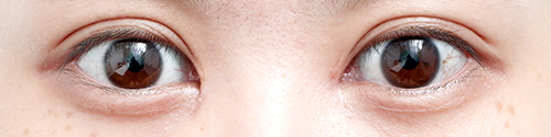 まず、目周りを拝見しまして、目頭にある蒙古ヒダが発達しているため、目頭のまぶたが極端にかぶさっていました。また、全体的に二重の幅も狭く、きつい印象の奥二重っぽい目になっていました。